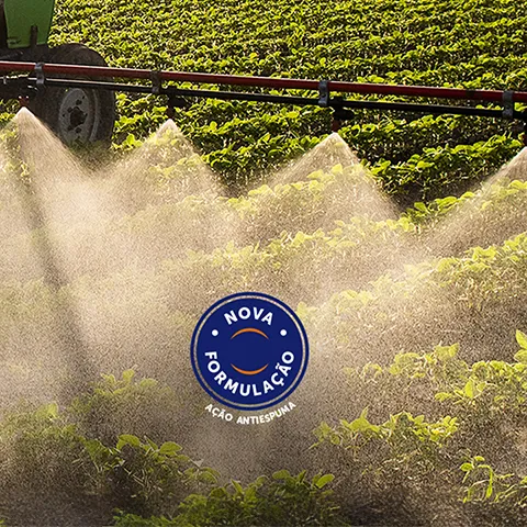 Nova fórmula com ação antiespuma que garante redução da deriva, padronização das gotas em tamanho adequado, maior penetração de ativos, melhor compatibilidade da calda e melhora na deposição e no recobrimento do alvo.